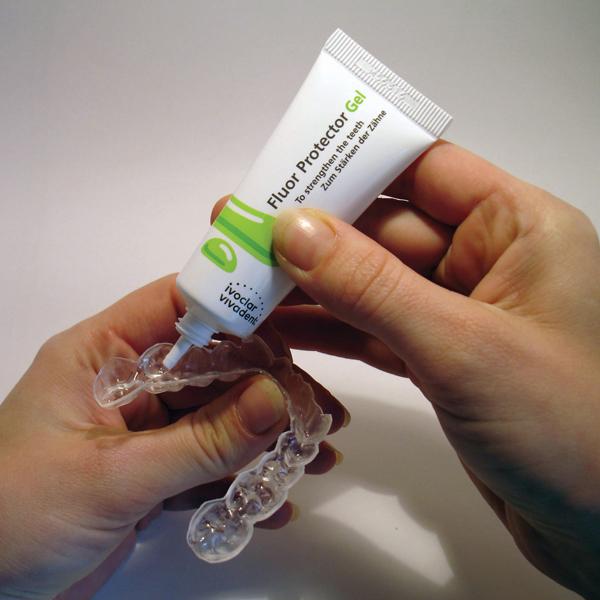 - Fluor Protector Gel can be loaded in a tray, which is worn for 10 minutes 1 to 2 times a day (Figure 5).