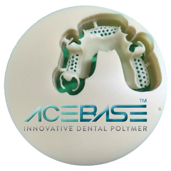 Acebase™ is a new millable material made from Acetal Resin. Acetal resin is very strong, monomer free, resists wear and fracturing and is quite flexible. These characteristics make it an ideal material for clasps for partial dentures, single pressed unilateral partial dentures, partial denture frameworks, provisional crowns and bridges, occlusal splints and even implant abutments. Acetal resins resist occlusal wear and are well-suited for maintaining vertical dimension during provisional restorative therapy. Acebase is available in 98 mm stepped disks to suit a large range of milling machines and various common vita shades.