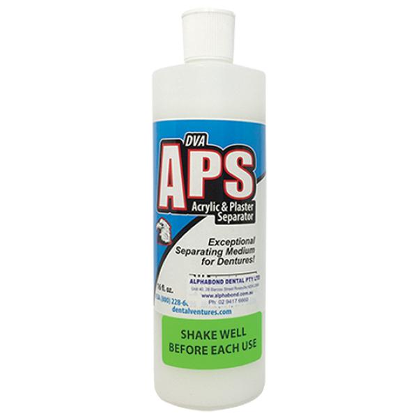 DVA’s Acrylic & Plaster Separator (APS) is an insulating or liquid separating product, ideal for use by prosthetic, orthodontic and crown & bridge laboratories. APS provides the cleanest, easiest separation of dental acrylics from plaster and other gypsums available in the market. It’s been said it works better than any other acrylic separator available! We’ll let you be the judge. APS will also act as a separating agent when applied between two gypsum materials. It leaves no residual film to take up space and restorations exhibit smoother and with cleaner surfaces. APS provides a range of benefits like reducing labour when deflasking, improved accuracy of fit and reduction in finish and polishing times. It’s the one separator for all resin and gypsum applications.