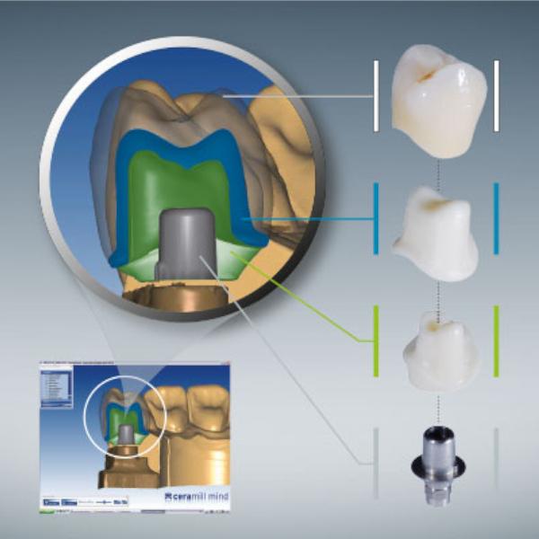Ceramill ti-connect titanium bases for custom single abutments are designed for the hybrid technique (adhesive bonding), ensuring reliable, durable fit of the abutment on the implant. The custom abutments can be fabricated via the Ceramill Motion or Ceramill M-Center. The design can be started immediately, even if the titanium bases have not yet been received in the laboratory. Ti-Connect titanium bases can also be used for the Ceramill base and Ceramill Multi-x. Ceramill ti-connect uses biocompatible restorations so there is no black metal margins in the patient’s mouth. In addition, emergence profile of the abutment from the gingiva can be customised for each individual case, perfect gingiva, perfect papillae after healing.