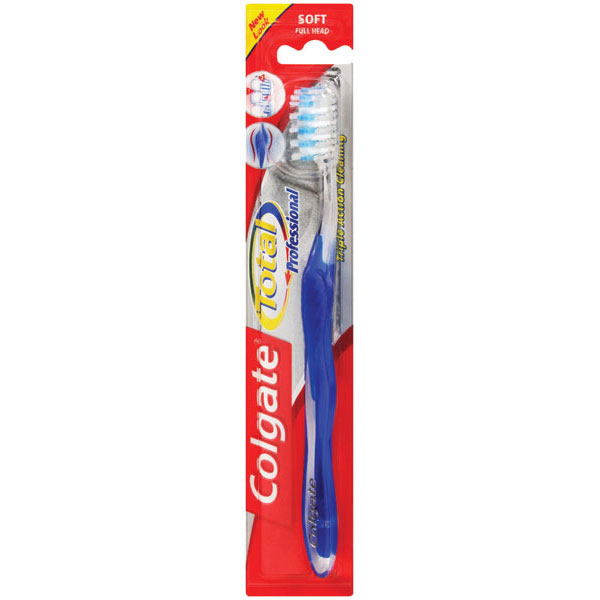 The Colgate Total Professional Toothbrush is clinically proven to be effective at removing plaque and features triple level filaments for effective cleaning at the gingival margin and interproximal surfaces. Longer filaments help clean in between the teeth, shorter filaments clean the surface of the teeth and angled filaments clean along the gingival margin. Indicated for at home use for all patients for effective plaque removal, Colgate Total Professional Toothbrush is available with a choice of Medium Compact, Soft Compact or Medium Ultra-Compact heads in Blue, Green, Purple and Pink.