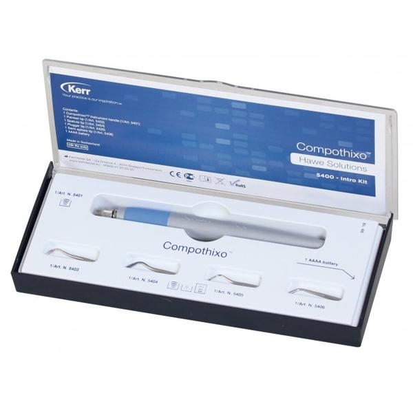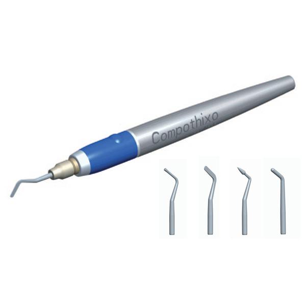 Compothixo represents a unique generation composite placement and modelling instrument suitable for all classes of restorations. The smart vibrations of Compothixo offer better wettability; superior adaptation of composite to cavity walls; reduction of air bubbles; precise application; layer thickness control; improved sculptability; and reduced stickiness. Indications include modelling of composite; occlusal modelling, fissures and removal of excess; layer application technique; bulk technique in small cavities; and direct veneering. Benefits include superior cavity and matrix adaptation; easy thin layer stratification, especially in anterior restorations; reduced pressure required for packing of composite; reduced stickiness of the composite versus traditional instruments; easy composite placement on the tooth wall; no pull-back effect; and easier application of bulk technique in small cavities.