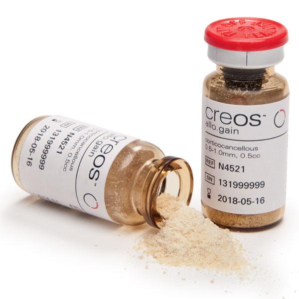creos allo.gain offers one of the broadest assortments of allograft bone particulate types, sizes and volumes for different clinical indications, such as sinus floor elevation, socket preservation, ridge augmentation or periodontal defects. With creos allo.gain you have the flexibility to choose the appropriate particulate graft depending on patient indication or personal preference.