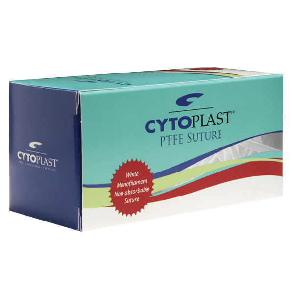 Cytoplast PTFE Sutures offer the best of both worlds of monofilament and braided sutures. They offer the soft tissue response and elimination of bacterial wicking characteristics usually associated with a monofilament, while maintaining the flexibility and patient comfort usually associated with braided sutures. Additionally, they retain a high tensile strength and are readily visible in the mouth.