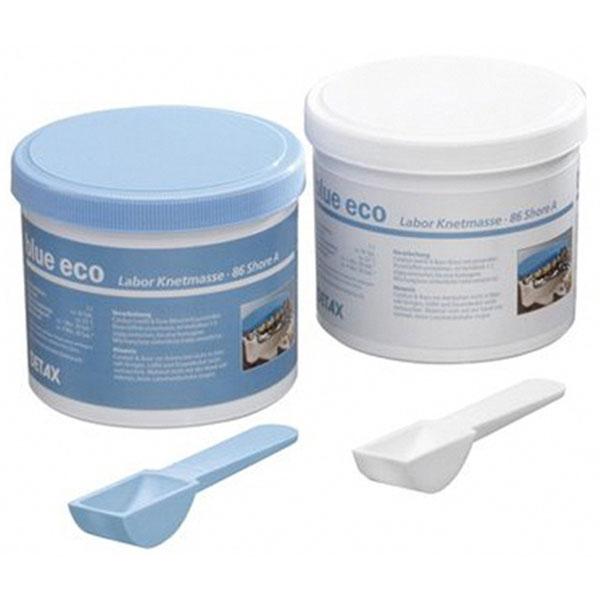 From the makers of Molloplast B, Detax Blue Eco Stone Putty (96 Shore A) is a high definition lab putty with an Easy Mix 1:1 Ratio. This A-silicone based, high viscosity material offers a smooth initial consistency with high definition that is dimensionally stable, especially smooth and heat-resistance up to 200°C. Blue Eco Stone offers extra high final hardness (approx. 96 Shore A), that is very economical, easy to cut and designed for versatile use (Fabrication of precasts, insulation of teeth in flasking, etc). Available in various sizes from 1.6kg.