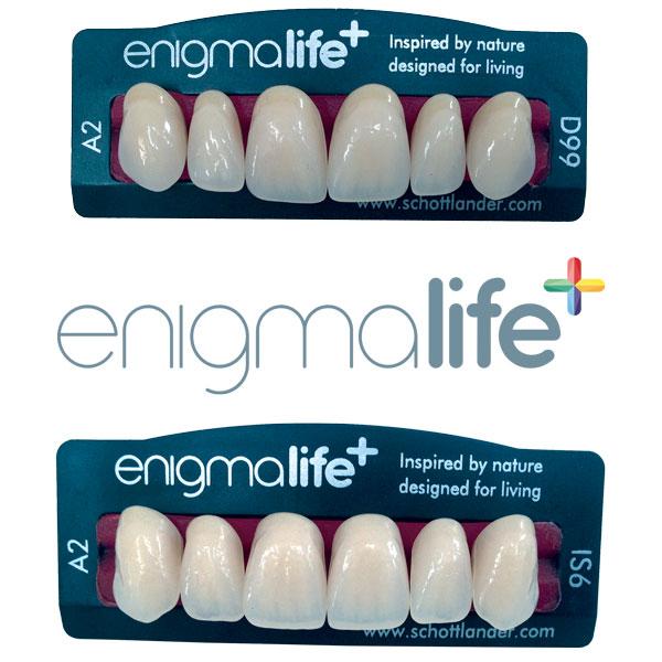 Continuing on from the success of enigma teeth, Schottlander recently decided to develop a new range of premium teeth, enigmalife+. In a brave move they decided to replace the award winning, most widely used artificial teeth in all the UK, with this new range. Schottlander spent millions in R&D, trials and tests to ensure that not only was their existing market share secure, but would also grow well into the future. To do this, Schottlander prioritised the qualities of character, mould selection and bonding strengths associated with enigma and added extra durability by incorporating composite and pre-cured polymer pearls to the acrylic resin and concentrated on creating an even more lifelike characterised translucent tooth. The results have been amazing. Enigmalife+ has already started winning awards. Enigmalife+ also has increased its mould selection adding a contemporary “Inspiration” range, and also an “S” range of posteriors which have a higher cusp with more anatomical detail. With a full digital library available, enigmalife+ are the artificial teeth of choice now and into the future.