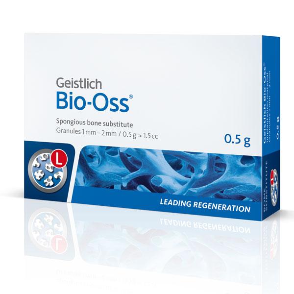 Geistlich Bio-Oss is a natural bone substitute material obtained from the mineral portion of bovine bone. The reason for the good bone regeneration seen with Geistlich Bio-Oss is its close resemblance to human bone. Geistlich Bio-Oss is used for volume preservation and effective bone regeneration and has proven its reliability in the long term. The large Geistlich Bio-Oss granules have more space between the particles than the small granules. Particularly in large defects, this enables improved regeneration over large distances and provides enough space for the ingrowing bone.