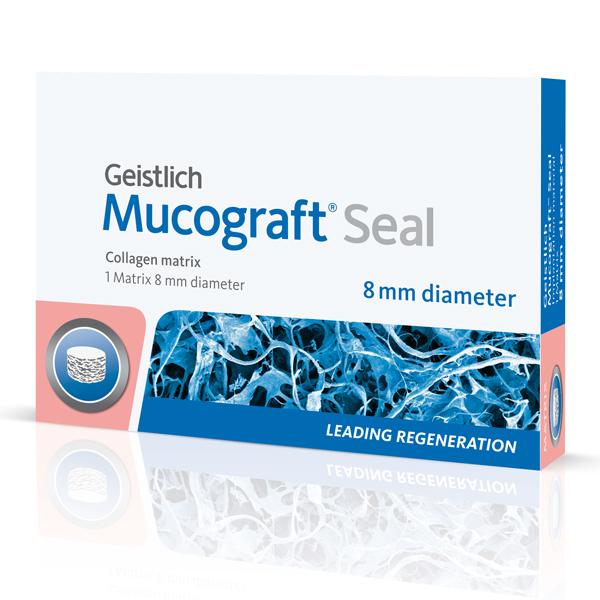 Geistlich Mucograft Seal consists of porcine collagen and is specifically designed for soft tissue regeneration in anterior extraction sockets. Geistlich Mucograft is built up of a compact structure that gives stability while allowing open healing, and a spongy structure that supports blood clot stabilisation and ingrowth of soft tissue cells. Geistlich Mucograft Seal is a ready-to-use collagen matrix with a convenient circular shape. The collagen matrix provides an alternative to soft-tissue grafts. Geistlich Mucograft Seal is indicated for the sealing of extraction sockets with preserved buccal walls in combination with Geistlich Bio-Oss Collagen in Ridge Preservation procedures (Jung R, et al.: J. Clin Periodontol 2013; 40(1): 90-98). This treatment leads to predictable dimensions for soft-tissue regeneration (Geistlich Mucograft Seal Advisory Board Meeting Report, 2013. Data on file, Geistlich Pharma AG, Wolhusen, Switzerland). The main benefits of Mucograft Seal are minimal invasion, less morbidity, natural colour and texture match, reduced surgical chair time and predictable soft-tissue dimensions for soft-tissue regeneration at implant placement.