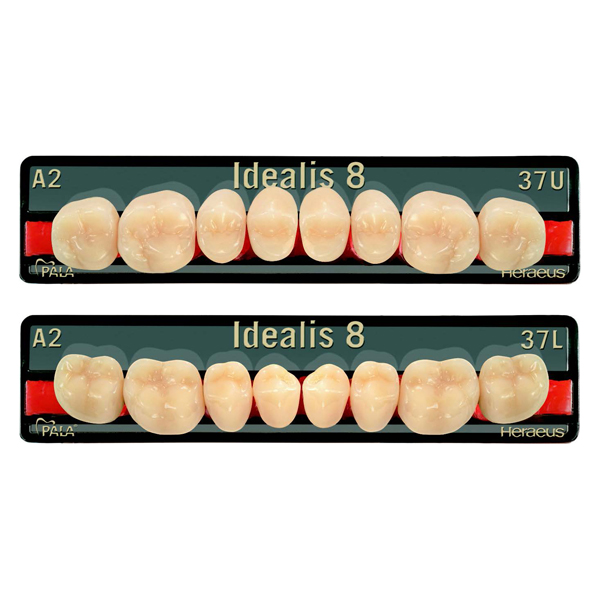 The new Pala Idealis line of posterior teeth features naturally reduced cusps optimally designed for the new requirements of prosthetics. Flat occlusal relief ensures precise centrics with maximum degrees of freedom in the paths of motion. For patients, this means maximum chewing efficiency with comfortable, interference-free and accurate function. The flattened multipoint contact minimises initial abrasion with implant-based dentures. Greater basal width and tooth length provide optimum coverage of supporting structures. Older patients benefit from the smooth, functional and easily cleaned morphology. The precise centric keying and wide range of motion also make the new posterior tooth ideal for treatment of temporomandibular disorders (TMJ).