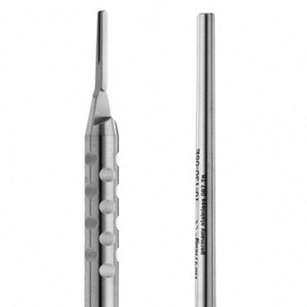 European style round scalpel handle. A round scalpel handle provides greater rotational movement with fingertip control and enhances dexterity.