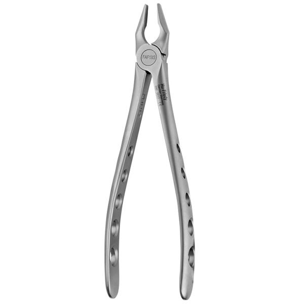 Atraumair 1 Apical Forceps are used to extract upper incisors. Hu-Friedy’s new Atraumair Apical Forceps are designed with enhanced beak geometries to allow for optimal access and enhanced engagement when extracting a tooth. This suite of forceps feature a matte finish and hole designs to reduce weight and reduce light reflection, enhancing visibility and increasing comfort and control during extractions. Additionally, the unique smooth hinge is laser marked for easier identification when bagged. Atraumair Forceps are meticulously crafted from the finest surgical grade stainless steel.