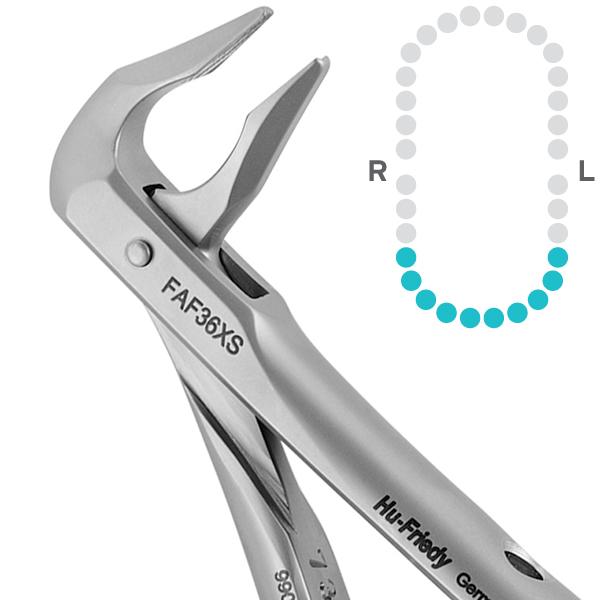 Atraumair 36 Apical Forceps are used to extract lower incisors, canines and premolars. Hu-Friedy’s new Atraumair Apical Forceps are designed with enhanced beak geometries to allow for optimal access and enhanced engagement when extracting a tooth. This suite of forceps feature a matte finish and hole designs to reduce weight and reduce light reflection, enhancing visibility and increasing comfort and control during extractions. Additionally, the unique smooth hinge is laser marked for easier identification when bagged. Atraumair Forceps are meticulously crafted from the finest surgical grade stainless steel.