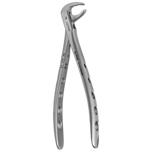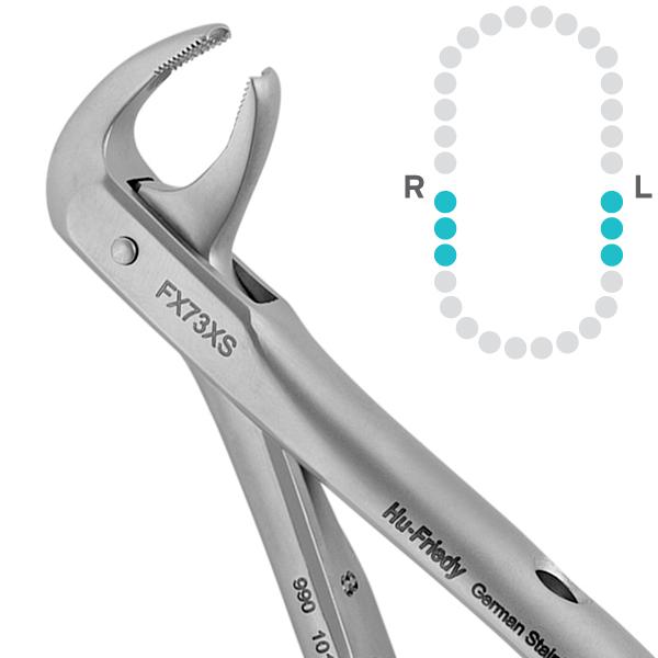 Atraumair 73 Forceps are used to extract lower molars. Hu-Friedy’s new Atraumair Forceps are designed with enhanced beak geometries to allow for optimal access and enhanced engagement when extracting a tooth. This suite of forceps feature a matte finish and hole designs to reduce weight and reduce light reflection, enhancing visibility and increasing comfort and control during extractions. Additionally, the unique smooth hinge is laser marked for easier identification when bagged. Atraumair Forceps are meticulously crafted from the finest surgical grade stainless steel.