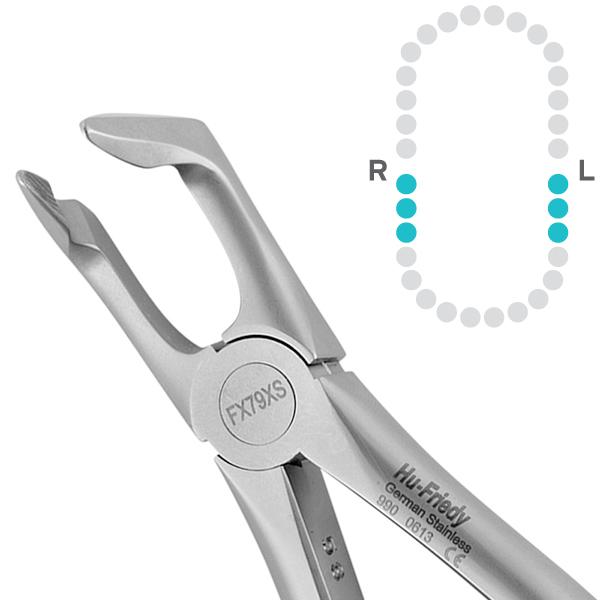 Atraumair 79 Forceps are used to extract lower third molars. Hu-Friedy’s new Atraumair Forceps are designed with enhanced beak geometries to allow for optimal access and enhanced engagement when extracting a tooth. This suite of forceps feature a matte finish and hole designs to reduce weight and reduce light reflection, enhancing visibility and increasing comfort and control during extractions. Additionally, the unique smooth hinge is laser marked for easier identification when bagged. Atraumair Forceps are meticulously crafted from the finest surgical grade stainless steel.
