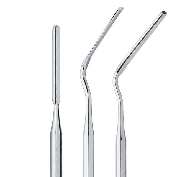 Periotomes facilitate removal of teeth by cutting the periodontal ligament with minimal damage to the alveolar bone during atraumatic extractions. Periotomes that are dull or worn do not effectively sever the periodontal ligament from the root surface of the tooth, causing more force to be used with a forcep and potential damage to the alveolar bone. Hu-Friedy’s Interchangeable Periotome features four thin, sharp interchangeable blades for severing the periodontal ligament. The blades are securely positioned in the handle and removable for easy cleaning, care and replacement.