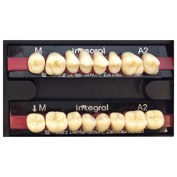 Integrals by Merz represent the next generation in acrylic denture teeth. Designed and manufactured in Germany, Integrals have an exceptionally lifelike appearance. Integral teeth are designed to look like real teeth and feature a high level of opalescence and translucency not found in standard denture teeth. They feature extreme detail and character making them ideal for partials and implants. Integrals by Merz are available in V shades A1-D4.