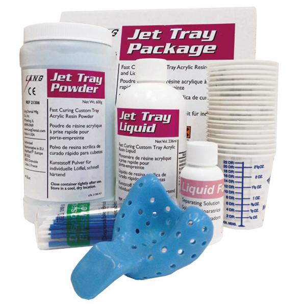 Jet Tray is a fast curing custom tray acrylic material from Lang Dental for the construction of custom-made impression trays. The material is ready to use immediately after mixing, has a non-stick consistency and excellent dimensional stability for a high degree of accuracy. It trims, cuts and polishes with ease and trims without "gumming" up disks and burs. Available in 600g and 2.26 Kg packs.