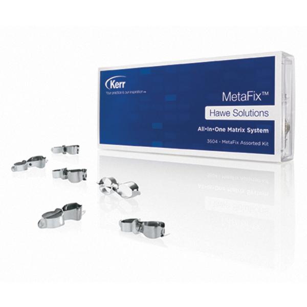 The new All-in-One MetaFix matrix, with the innovative integrated tightening/opening system, is the perfect solution for Class II - MO/OD/MOD composite fillings. Features include an integrated clamping system for easy and stable tightening; integrated release mechanism for fast and simple removal; ring matrix band 0.038 mm for stable placement without distortion rough tight intact contact points; and no additional tools, disinfection or cleaning needed. Easy creation of the contact point and of an anatomic restoration are possible thanks to its contoured shape for perfect contact point control; and anatomical design suited for better cervical adaptation and cavity depth. Three sizes are available for better marginal adaptation to any posterior tooth (premolar/molar) and no overhangs nor extensive finishing is needed. The light matrix system is excellent for patient comfort and provides better visibility of the working area.