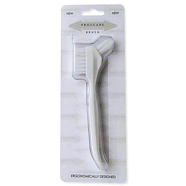 Prozcare Brush is specifically designed for removable dental appliances. It is ergonomically designed for easy grip with medium specially designed bristles that help to remove food debris, and narrow head bristles or the hard to reach areas.