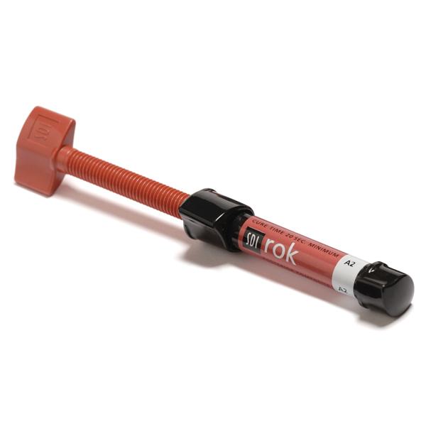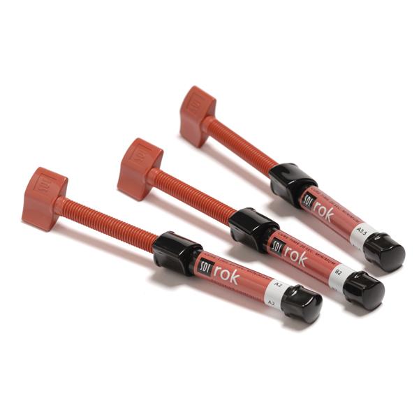 SDI's Rok is a posterior hybrid composite like amalgam, but white. A high compressive strength enhances longevity of a composite by withstanding mastication forces and Rok’s optimum filler level maximizes strength. Rok can be placed like an amalgam and its exceptional packable heavy body nature means the use of a conventional amalgam condenser is possible. Utilizing longer resin chains with fewer monomer links, Rok has a very low shrinkage. Lower shrinkage minimizes sensitivity and microleakage; an effective seal against microleakage decreases the potential for secondary caries development. Rok’s high filler level of glass particles maximizes strength, whilst minimizing wear and shrinkage.