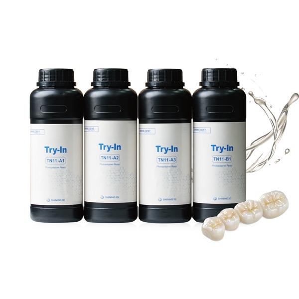 TN11 is an ideal choice for printing temporary crown and bridge for try-in with perfect perfomance in colors, morphology, occlusion, etc. This material has features including high toughness, high pressure resistance, high flexural strength with low water absorption. Multi-color allows for different tooth color treatment, restore natural tooth color and excelent texture.