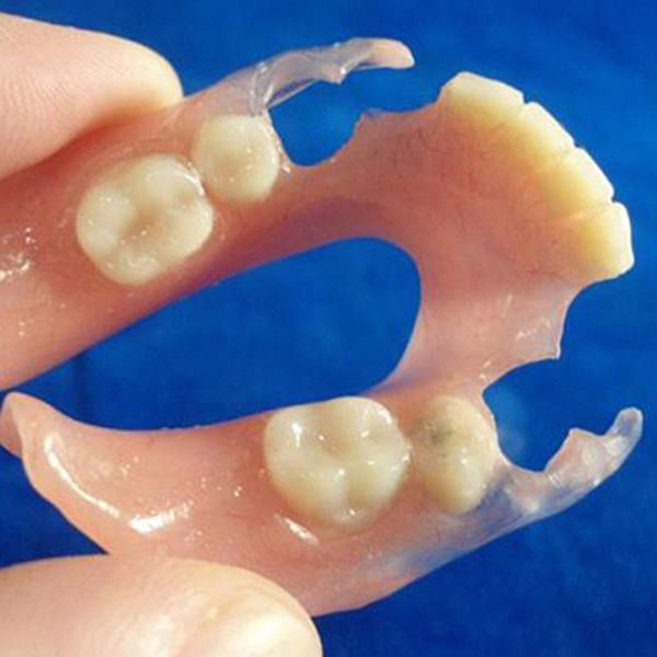 Flexible partial dentures have grown in popularity during the past 20 years, but their growth has been inhibited, since they could not be repaired or relined effectively. New ULTRAflex™ is a modified composite with flex for partial dentures. Unlike conventional nylon materials, it can be easily repaired or relined and will give your patients many years of problem free partial denture wear with comfort. ULTRAflex is an alternative to expensive metal partials or can be used in conjunction with metal partials for better aesthetics. ULTRAflex is considered an allergy free material since there is NO methyl methacrylate monomer. ULTRAflex is self-adjusting when placed in hot water before insertion in the mouth.