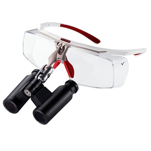 A mix of technopolymers and special alloys of aluminium and magnesium in a structure that combines flexibility with lightness and strength. An eye-catching design made of only 89 grams, designed by Univet for maximum wearability. The innovative mechanism Fliplock blocks the optical structure ensuring the maintenance of the position and the opportunity to work with any LED light source always on board.
