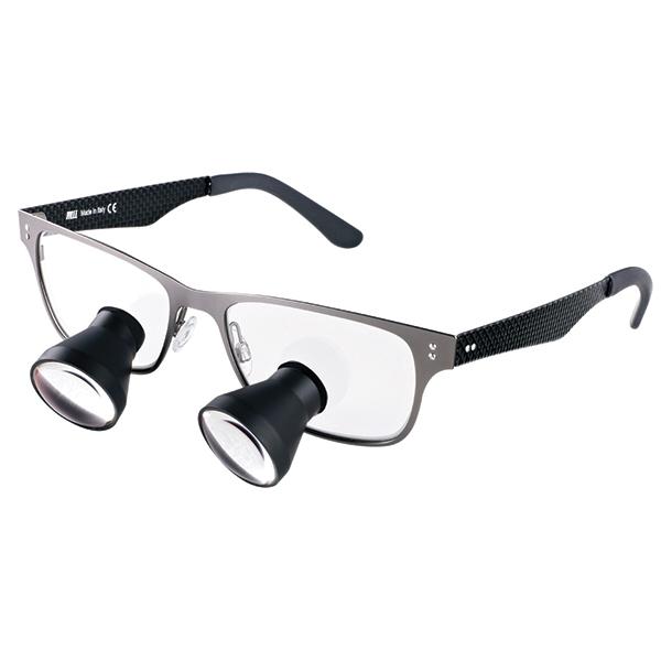 This new elegant and essential "Ash" frame comes with carbon fibre temples. This gives the frame the extra strength and flexibility and avoids movement of the binoculars from the constant movement of putting the loupes on and off all the time. Comes also in the following: Adjustable nose piece; Possibility to install corrective lenses; Side shields supplied; and available in two frame sizes in two different colours.