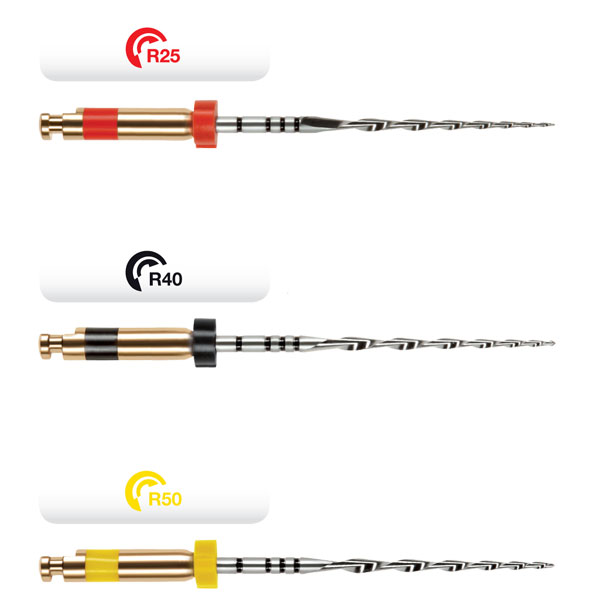 Reciproc is arguably the most significant new development since nickel-titanium instruments were first introduced to rotary preparation of root canals. The difference to rotary NiTi-systems with their elaborate instrument sequences is that Reciproc completely prepares and shapes the root canal with only one single instrument: One File Endo. The Reciproc system was developed by VDW/Munich to systematically simplify the preparation of root canals while ensuring maximum security. Simplicity is made possible through the use of this new reciprocating movement coupled with the special design of the RECIPROC instrument itself. In its back-and-forth movement with varying angles of rotation, the instrument moves toward the apex with its active forward and discharging backward movement. Precise steering takes place with the easy-to-use VDW.SILVER RECIPROC motor. The instrument has a specific design and, together with this novel reciproc-movement, even extremely curved or narrow canals can be easily prepared. • The R25 has a diameter of 0.25 mm at the tip and an 8% (0.08 mm/mm) taper over the first 3 mm from the tip. The diameter at Dl6 is 1.05 mm. • The R40 has a diameter of 0.40 mm at the tip and a 6% (0.06 mm/mm) taper over the first 3 mm from the tip. The diameter at D16 is 1.10 mm. • The R50 has a diameter of 0.50 mm at the tip and a 5% (0.05 mm/mm) taper over the first 3 mm from the tip. The diameter at D16 is 1.17 mm.