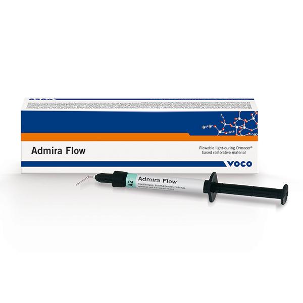 With Admira Flow, VOCO also offers a flowable, light-curing restorative material based on Ormocer, which is characterised by good flowability and high material elasticity. The material is highly thixotropic, that is, it flows when applied and handled and is stable when resting. Due to its material elasticity, Admira Flow is suitable as a stress-absorbing lining material, particularly when used in combination with Admira Bond. Admira Flow offers further advantages due to its time saving application and excellent wetting properties. The flowable composite is equally as biocompatible and resistant to shrinkage as the packable Admira variant. As Admira Flow is highly translucent and its shade matches exactly that of Admira, aesthetic restorations are quick and easy to realise with a combination of both materials.