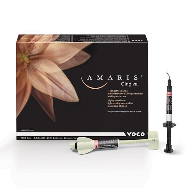 For the highest standards in aesthetic dentistry, Amaris Gingiva is the only restorative that permits chairside gingival shade matching. This new gingiva-shaded, composite-based restoration system facilitates individual shade-matching using a combination of a base shade (nature) with three mixable opaque shades in white, light and dark. The result is a representation of the gingiva that appears natural. Through this principle, behind which the proven Amaris-know how stands, extensively exposed cervical areas caused by gingival recession and wedge-shaped defects in the cervical area can be controlled in the future, both functionally and aesthetically. With Amaris Gingiva, the high standard placed on the capacity of modern composites no longer has to end at the cervical boundary. This new material permits the reconstruction of the "red-white" boundary with a predictable result.