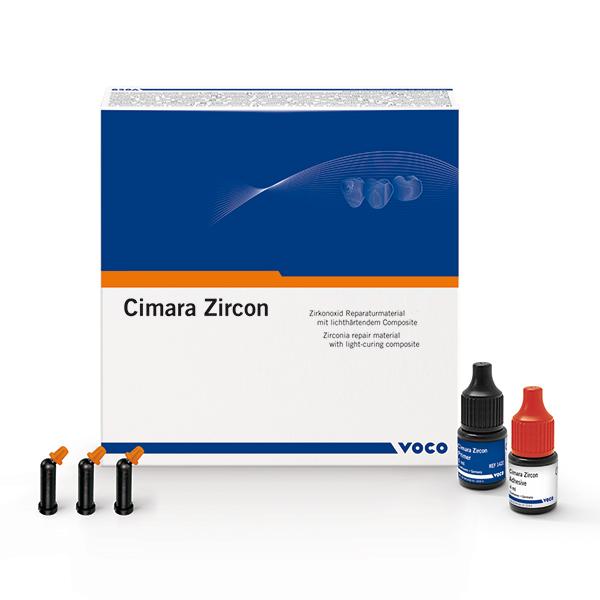 Cimara Zircon is the new complete set for high-quality, aesthetic repairs with composite of defects in fixed all-ceramic or ceramic veneer restorations with zirconia frames. Cimara Zircon enables restorations to be repaired chairside intraorally, quickly and inexpensively, avoiding complicated and time-consuming measures such as removal of the restoration, taking an impression and the provision of temporary restorations. The complete set contains all the components required for a repair of ceramic restorations that is as stable as it is aesthetically perfect. The set includes a primer specially developed for the special material properties of zirconia, an adhesive matched to the indication, the high-performance composite Grandio SO as well as special grinding burs for conditioning the ceramic surfaces in the area of the defect. The repair with Cimara Zircon creates a permanent bond between ceramic and composite and has much higher shear bond strength values than other repair systems. Cimara Zircon is a useful supplement to Cimara, the tried and tested repair system for metal ceramic restorations.