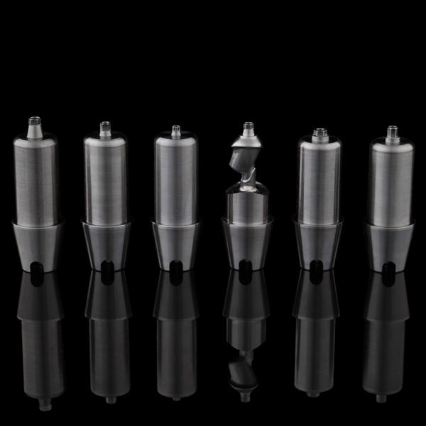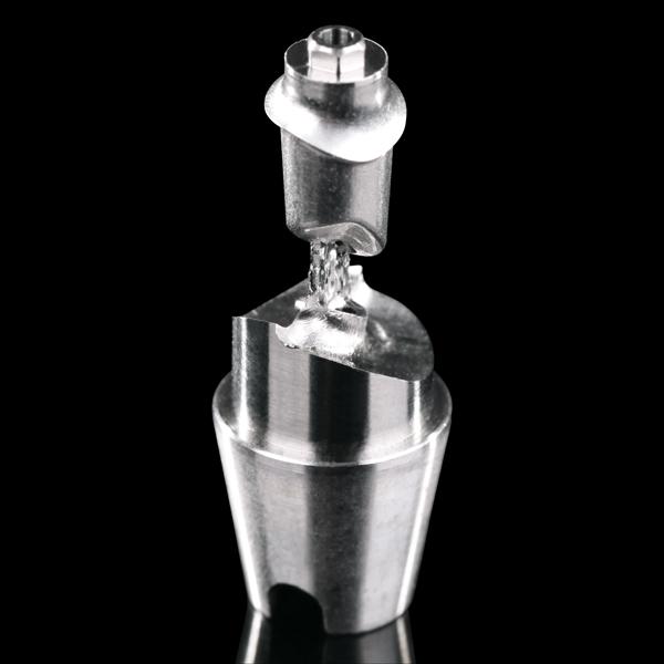 The manufacture of precise and personalised titanium abutments is now particularly easy and fast, thanks to the new Raw-Abutments which already include a precise, industrially prefabricated implant connection for different implant systems. The range of available implant systems is continuously being expanded. In combination with the Milling Unit M1 Abutment and the CAD/CAM Milling Burs Titan for different finishing stages, the blanks can be transformed into individual and perfectly fitting abutments in merely 20 minutes. Abutment geometries can be freely defined. The Raw-Abutments© are free from any allergy-causing substances and therefore especially health-friendly. With the aid of the Titanium Spectral-Colouring Anodizer, the abutments can also be anodized in different colours (e.g. gold-coloured) and are therefore ideally suited as a primary construction for zirconia structures. With the special Raw-Abutment© Holder the blanks will in the future also be processible with the Milling Units M5, M4 and M1 Wet Heavy!